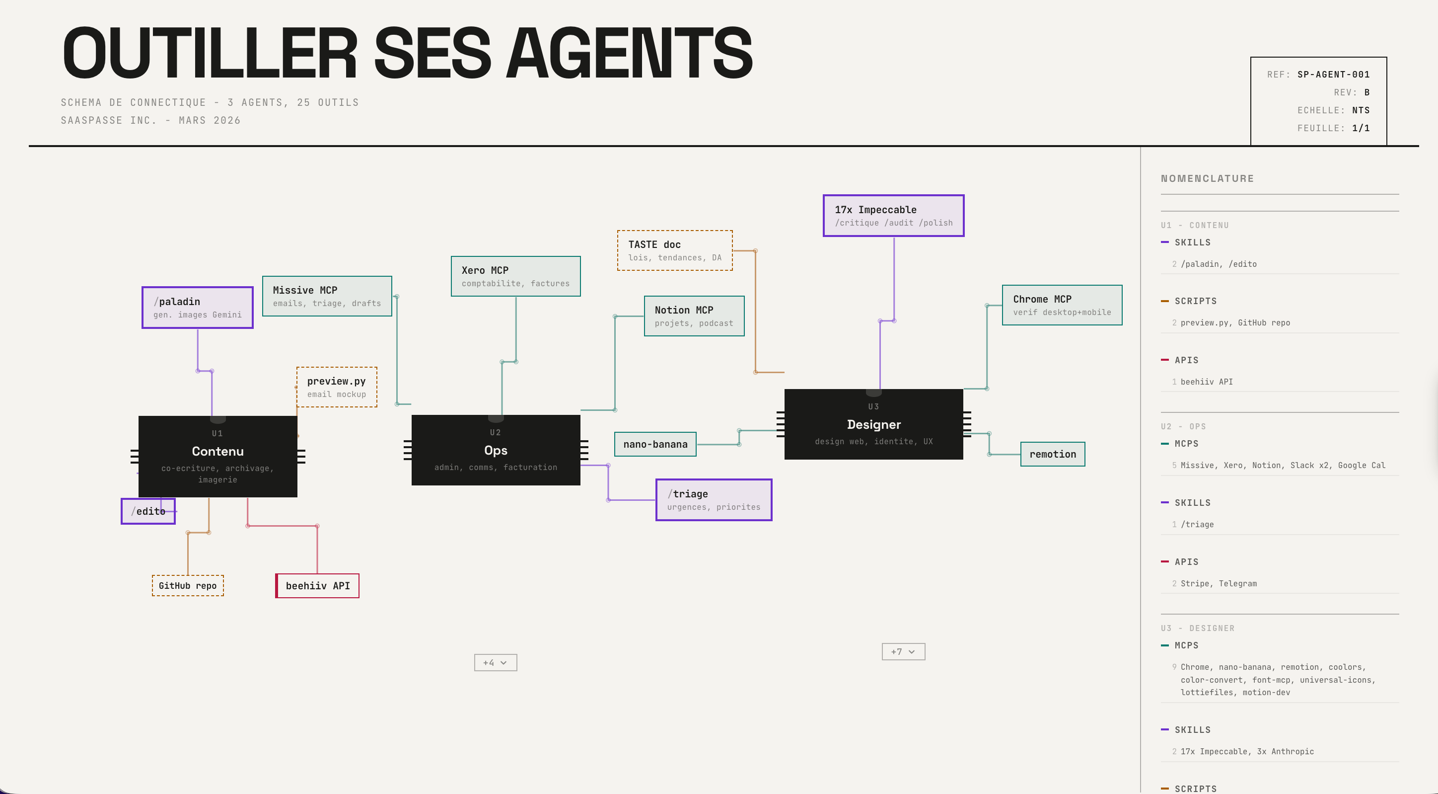 J'ai passé les derniers mois à bâtir plusieurs agents AI chez SaaSpasse. Aujourd'hui, je t'en présente trois. Un pour le contenu, un pour les opérations, un pour le design. Ce que j'ai appris: le modèle, c'est 20% du résultat. L'outillage, c'est le 80% qui fait la différence.